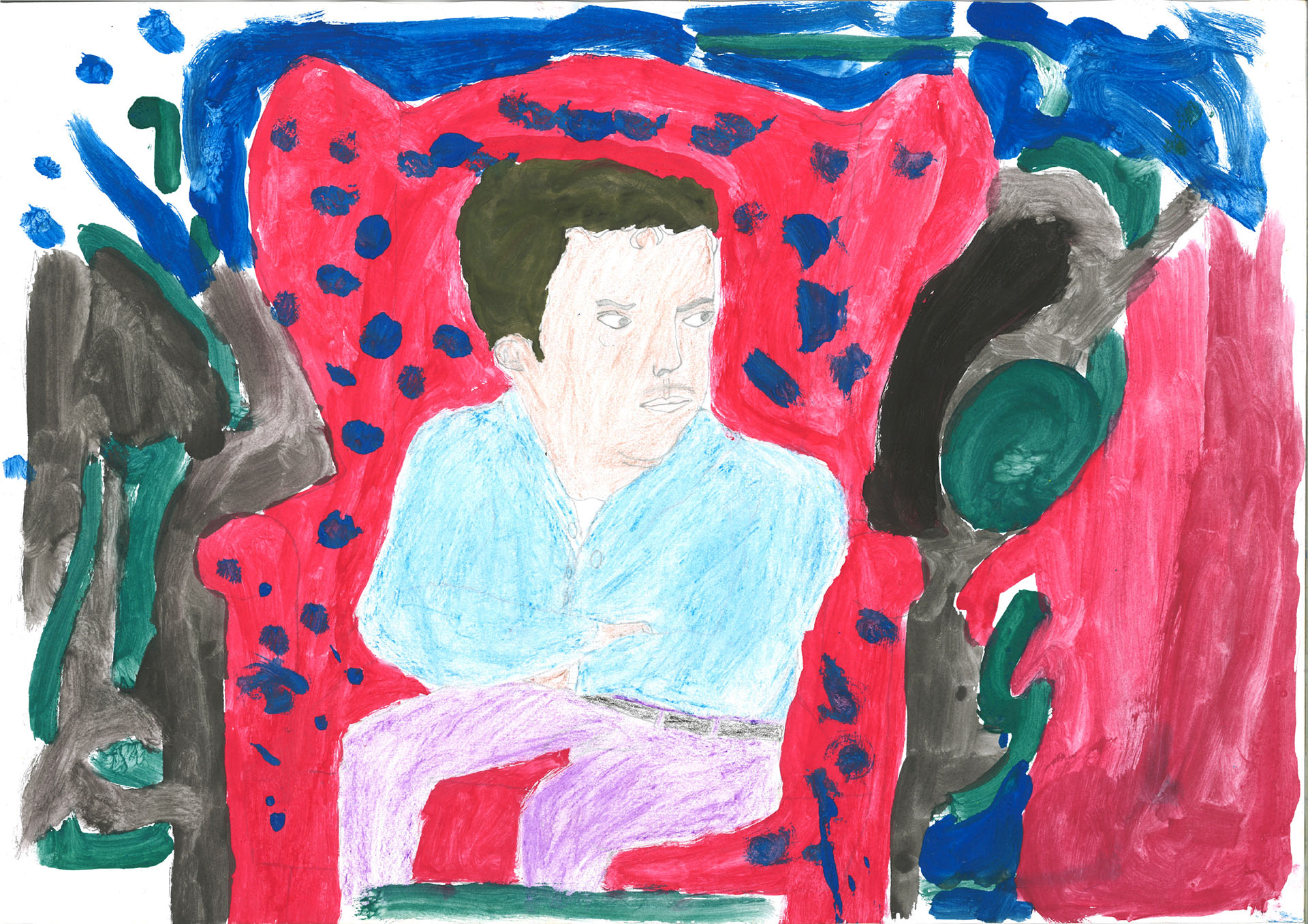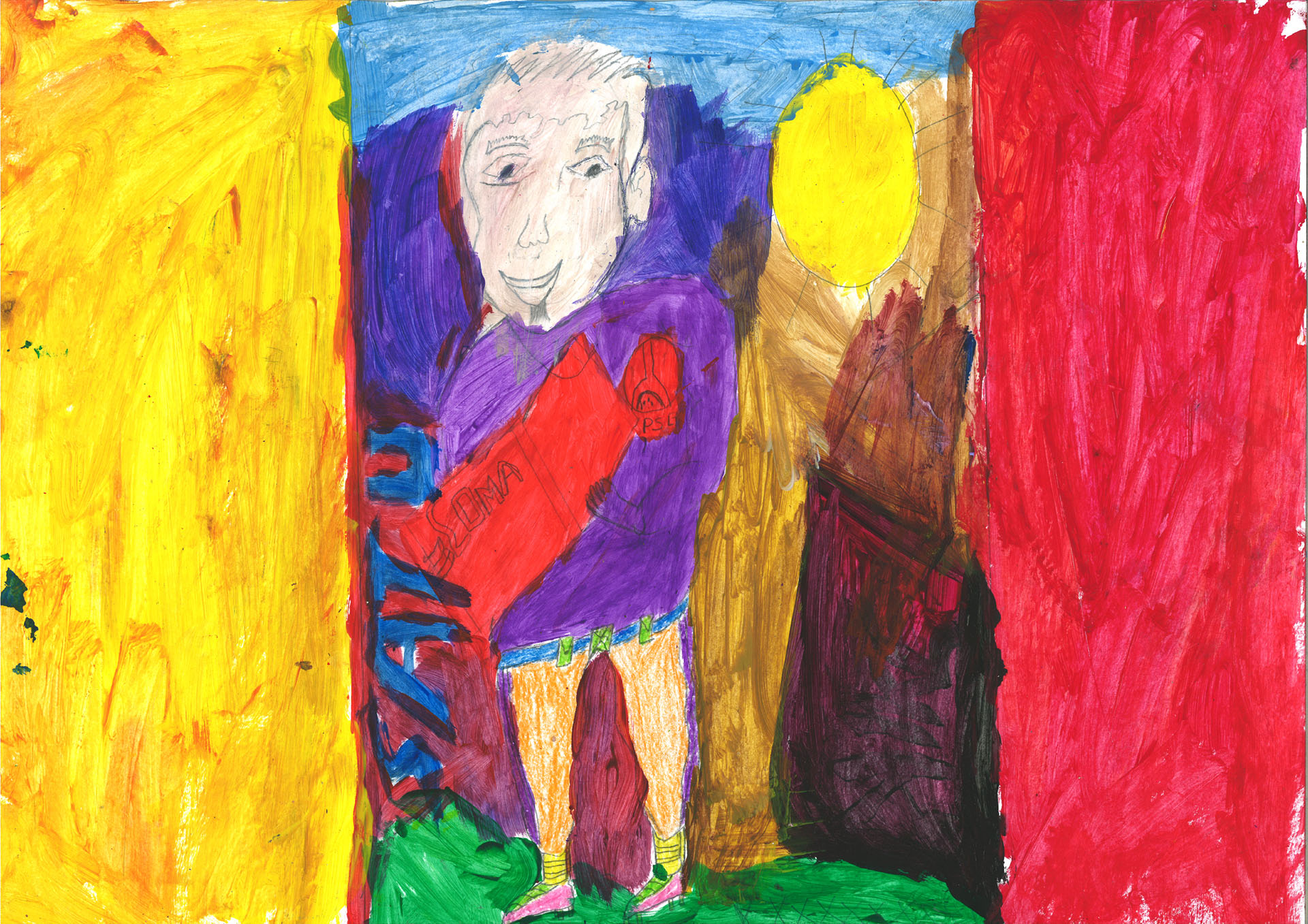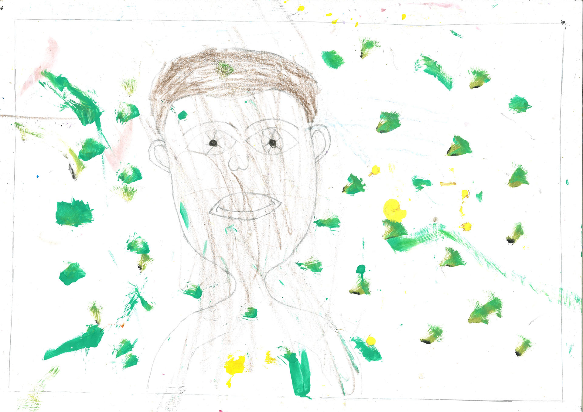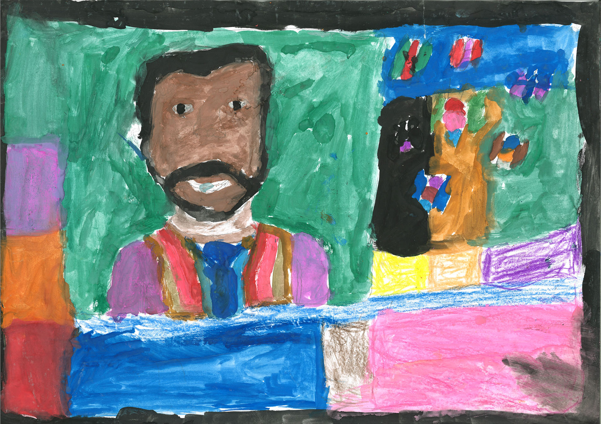 背景の下の枠が緑なのは、何かフェンスとか、外側からお父さんをのぞきながら描いたのかな?など想像しながら選びました。