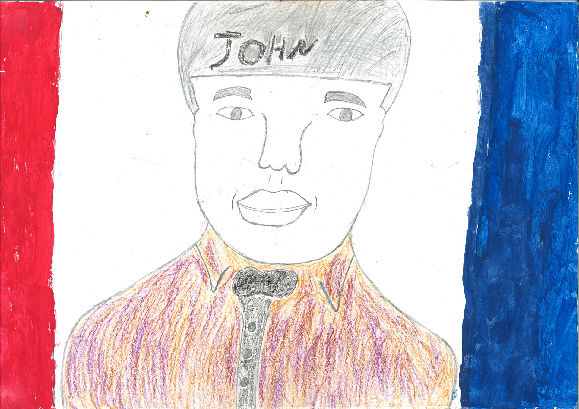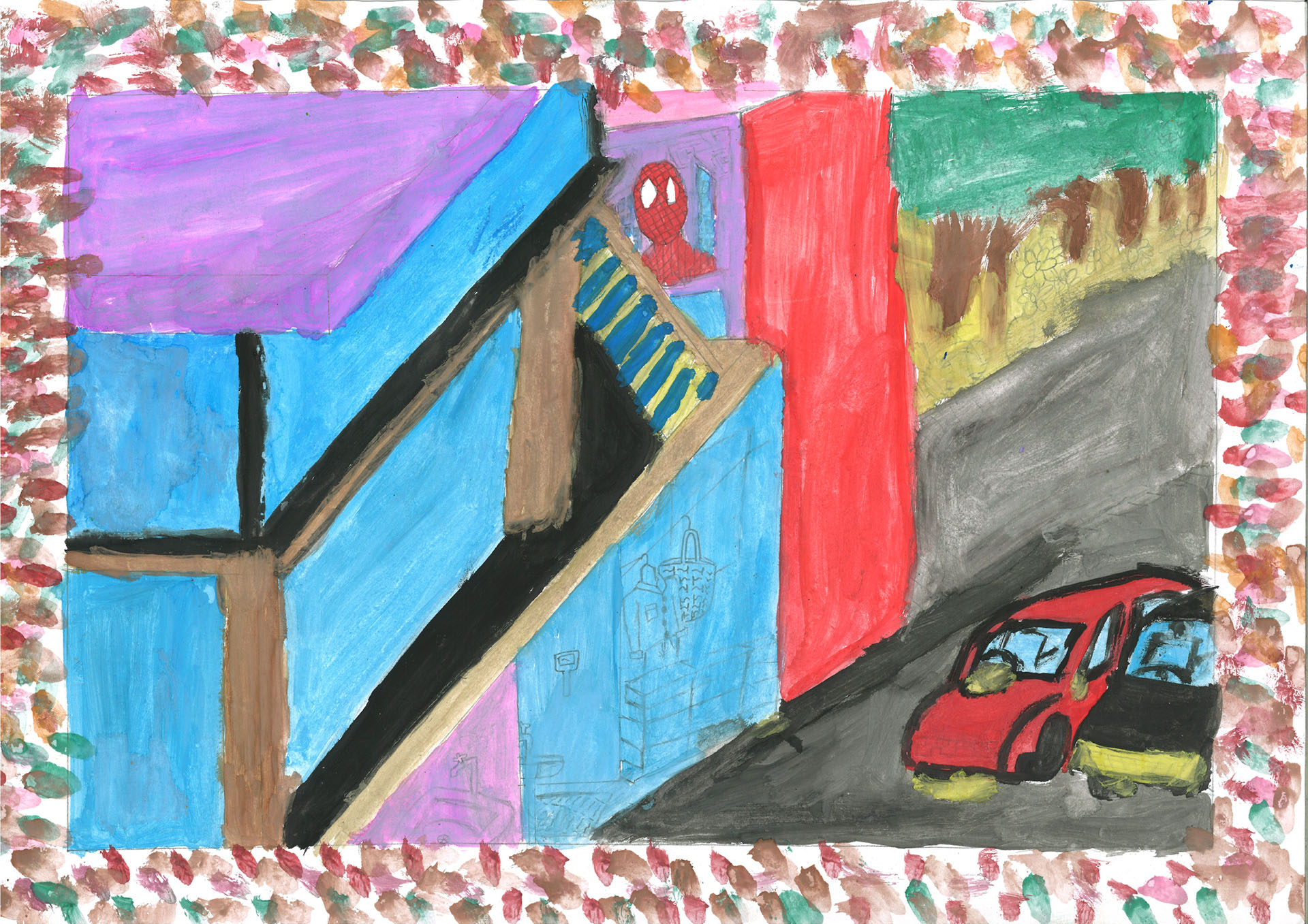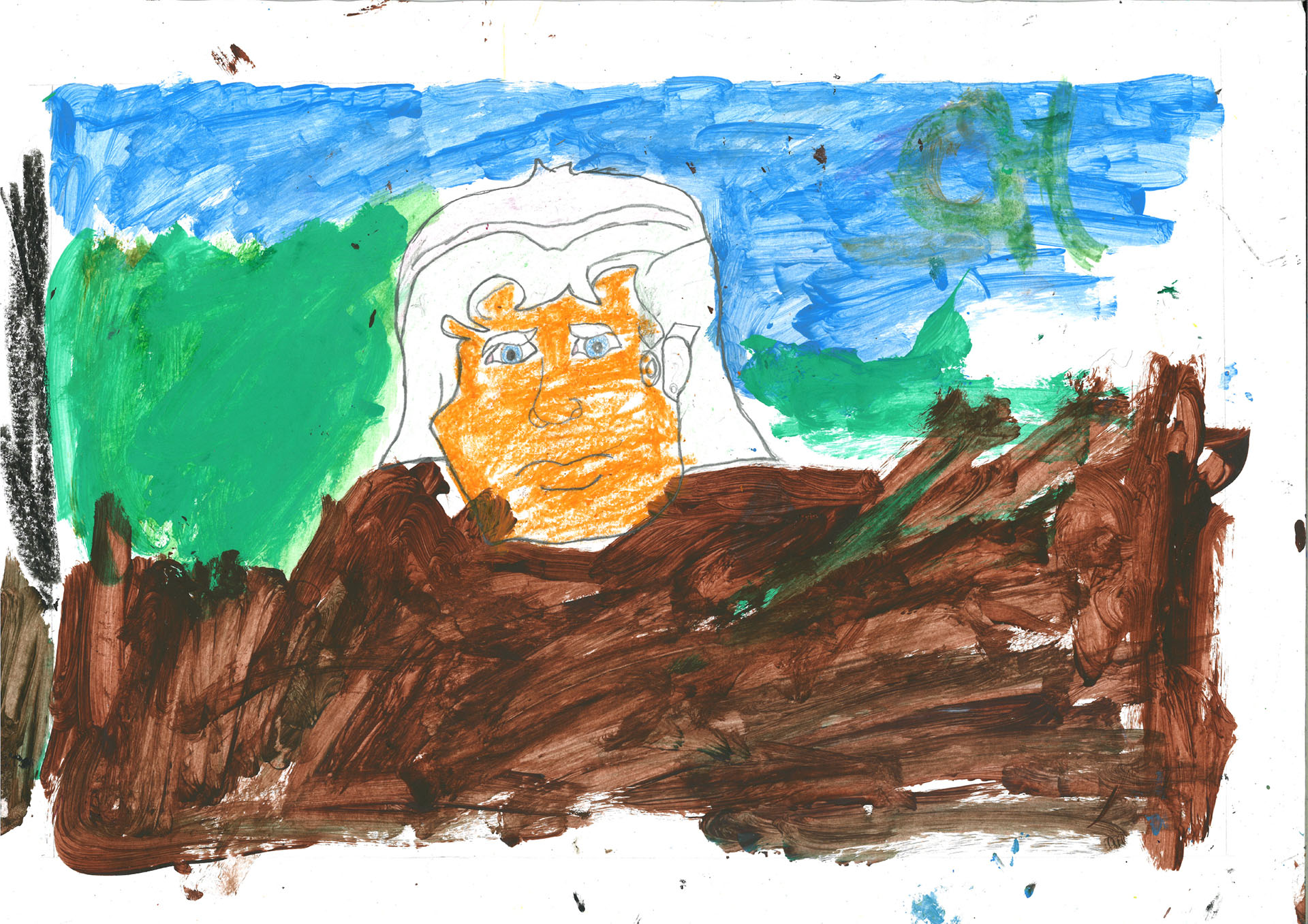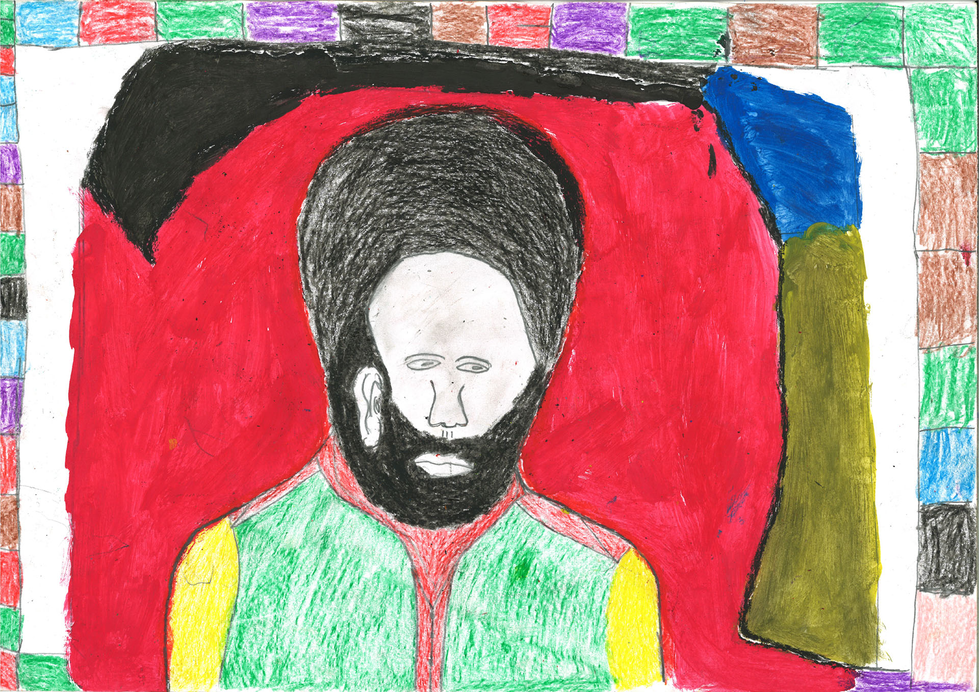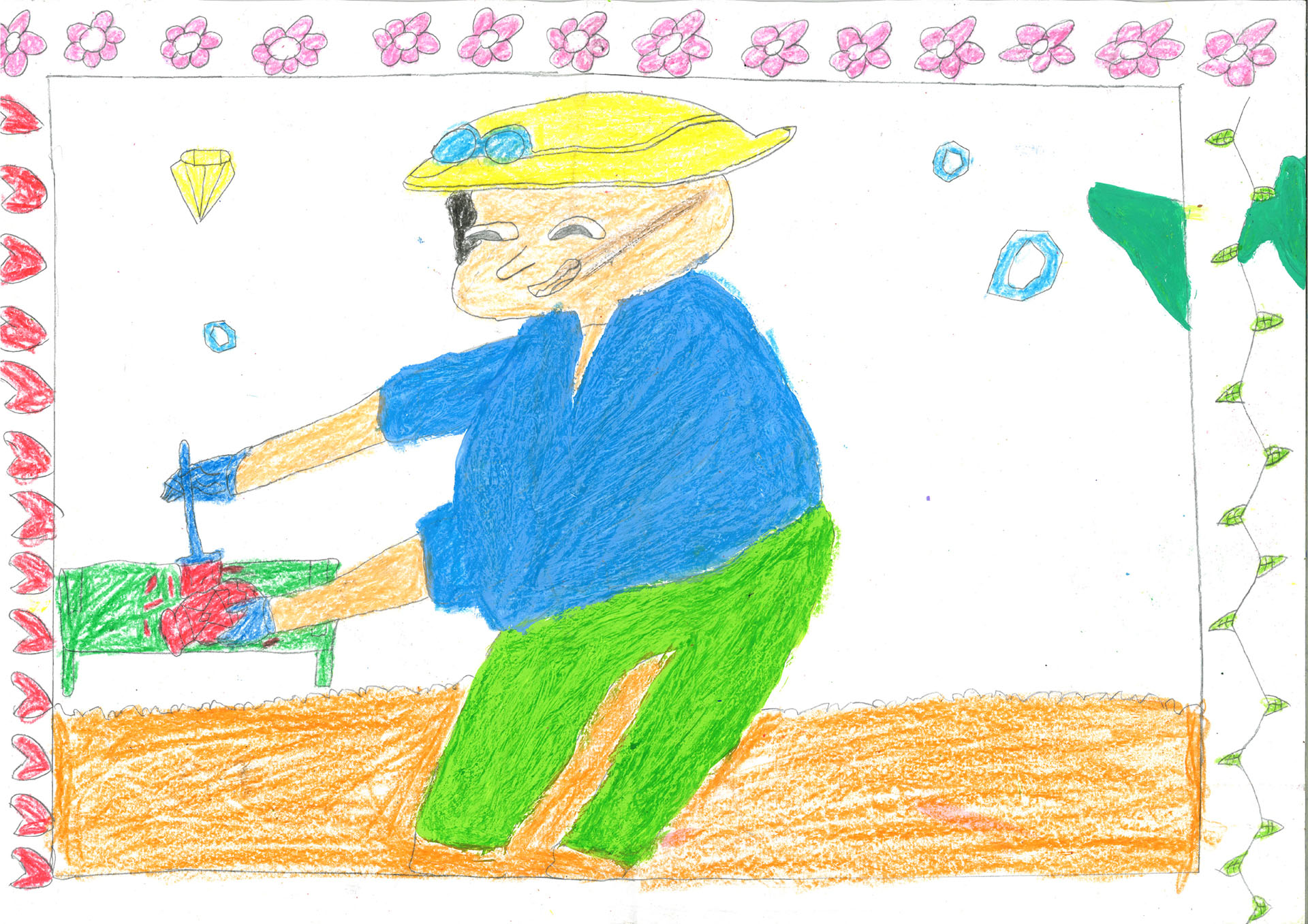 背景の下の枠が緑なのは、何かフェンスとか、外側からお父さんをのぞきながら描いたのかな?など想像しながら選びました。