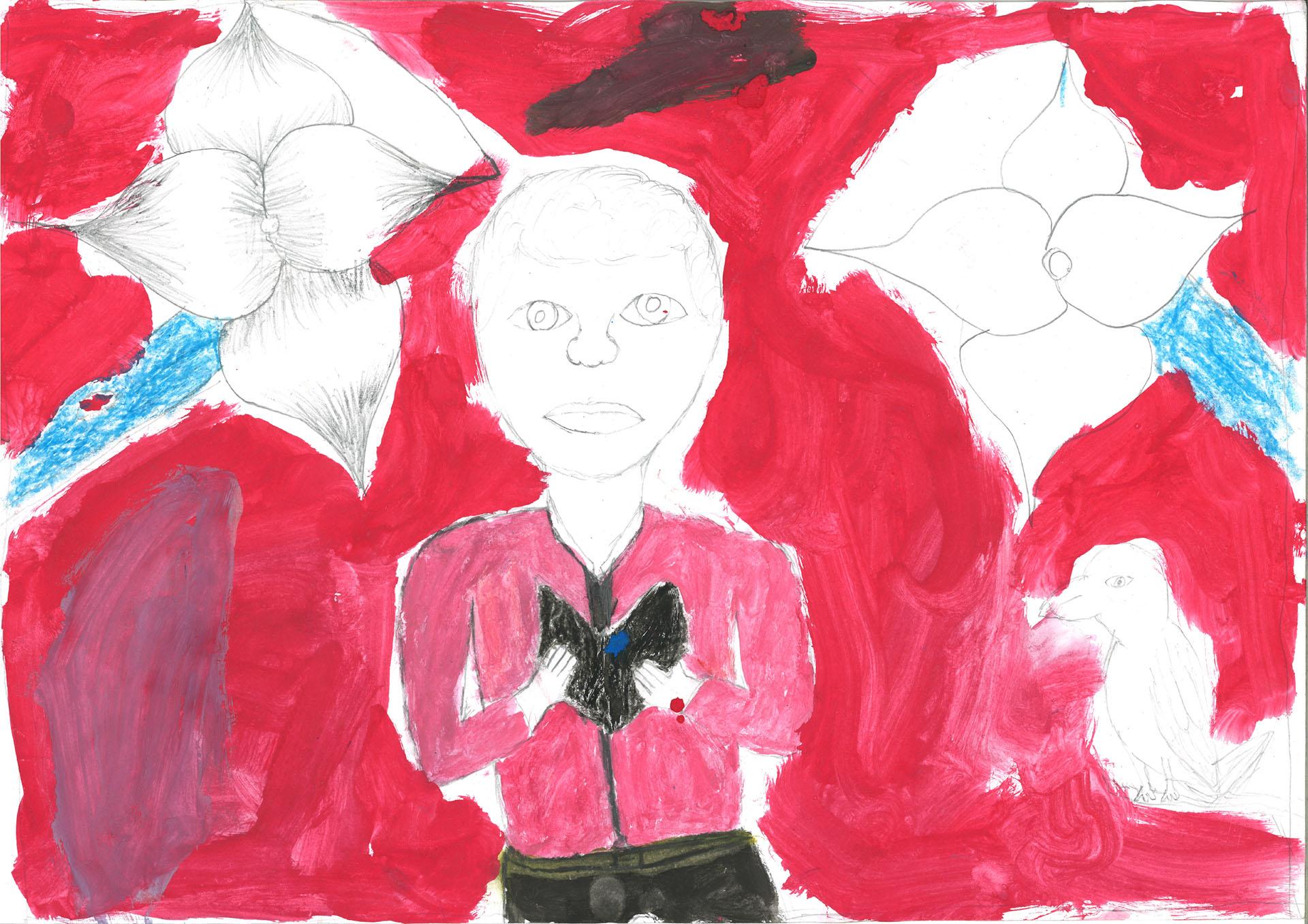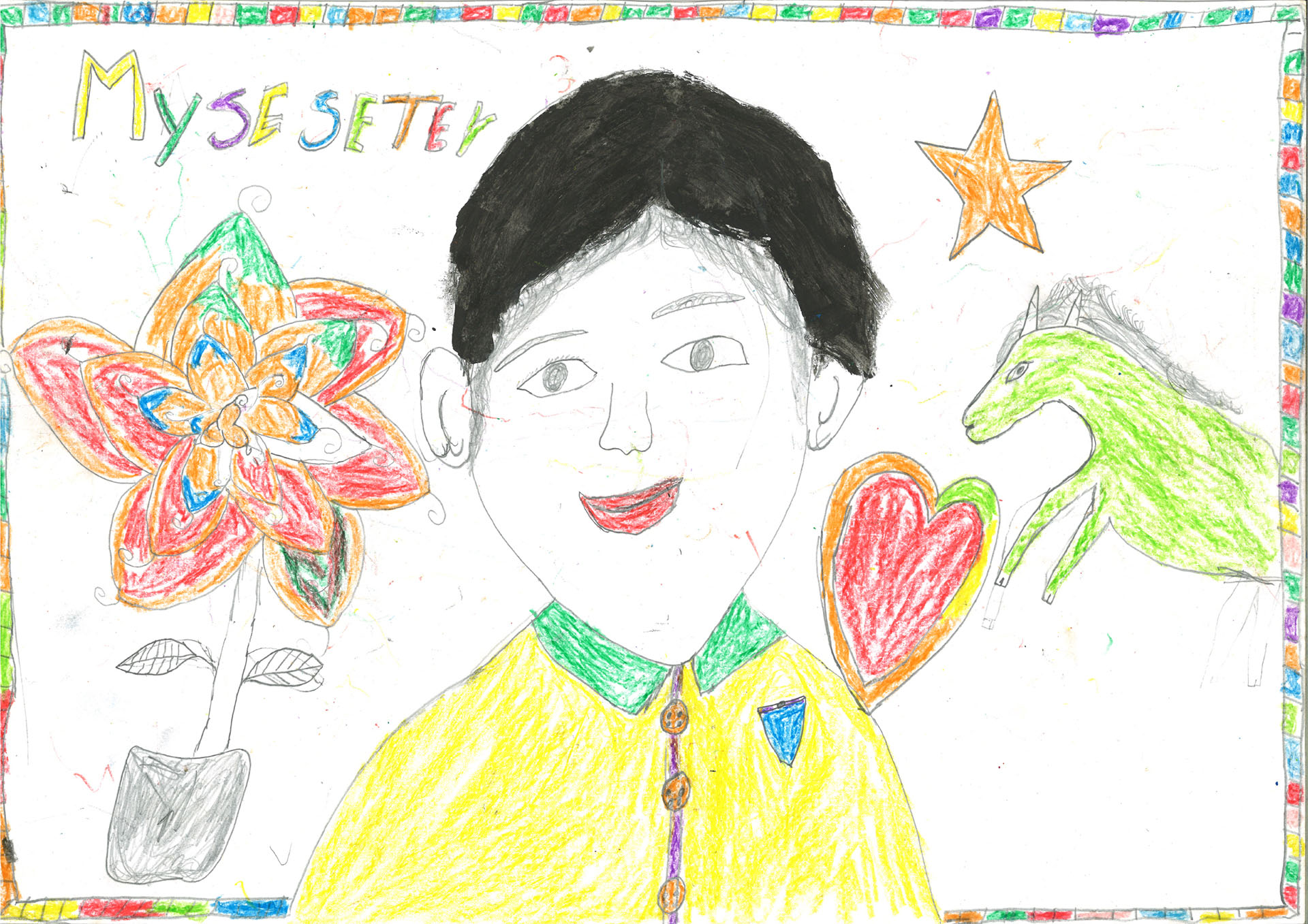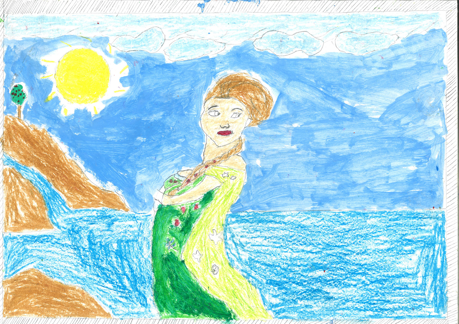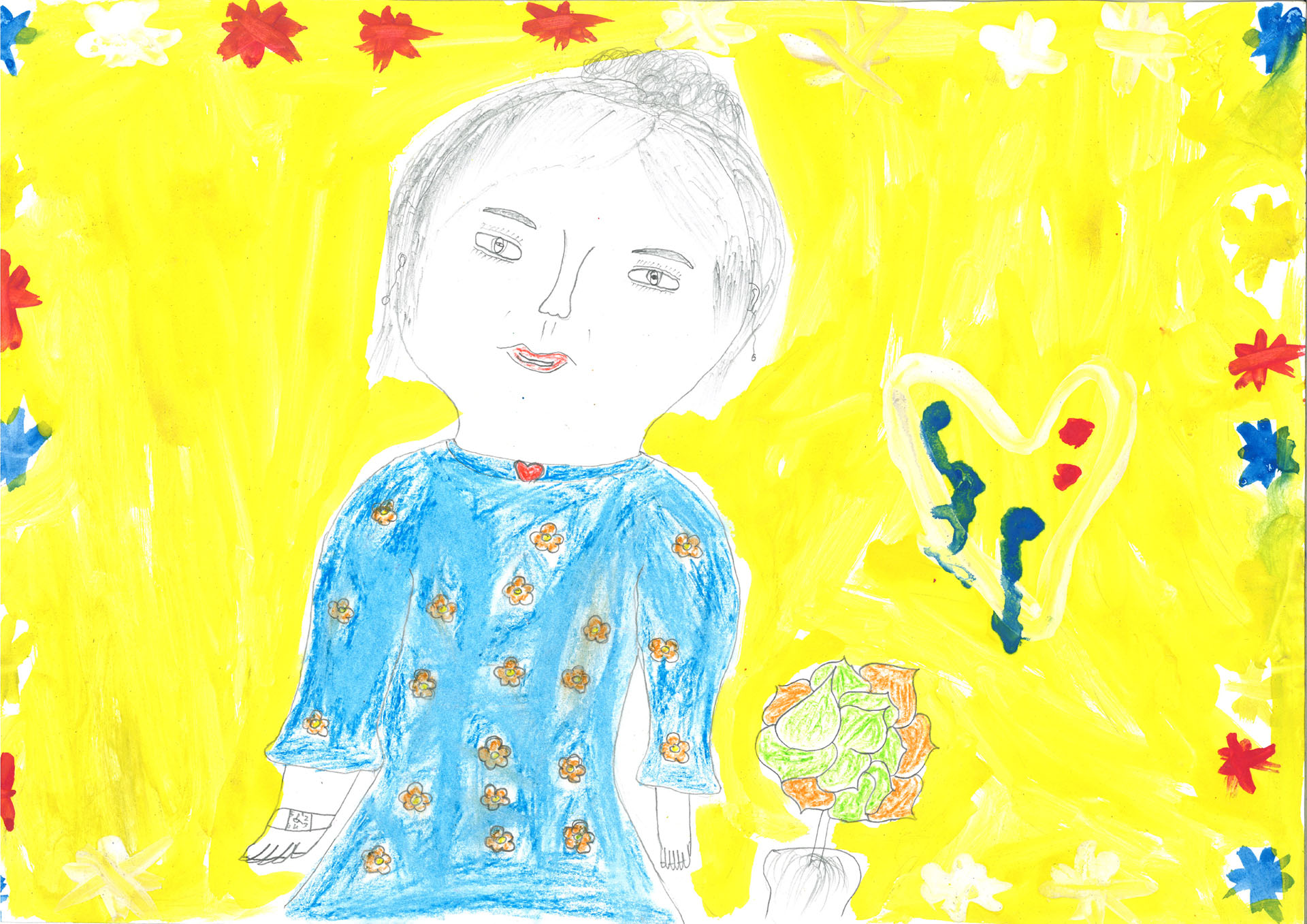 お母さんがポーズしているのも何だか素敵だし、お花や鳥、お母さんを取り囲んでいるものの描き方も可愛いくて、大切な人を丁寧に描いてくれたんだなと思いました。