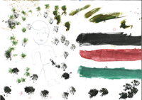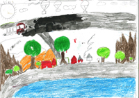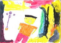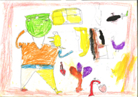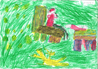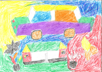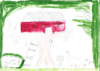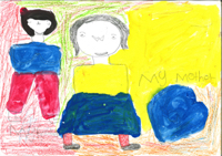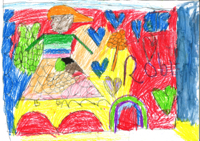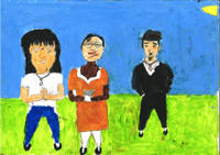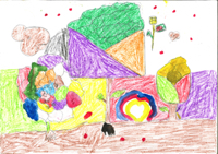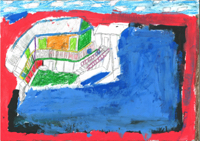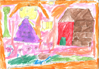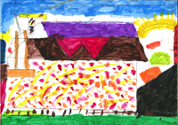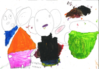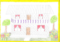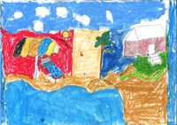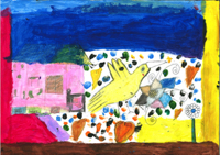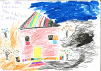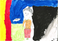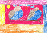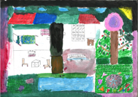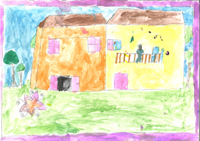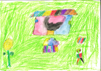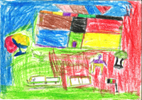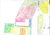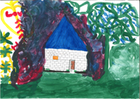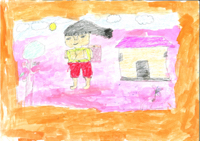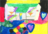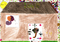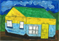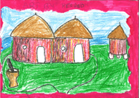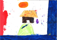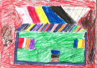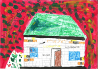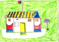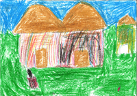 ザンビアの、自国から逃れてきた難民の子どもたちが家族や友達という「人」を描くことが多いのに対し、やっと定住できた子どもたちが「家」を多く描いていることも興味深いです。