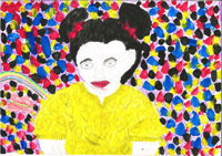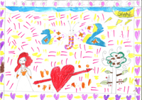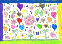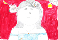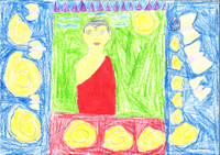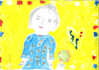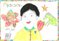 お母さんがポーズしているのも何だか素敵だし、お花や鳥、お母さんを取り囲んでいるものの描き方も可愛いくて、大切な人を丁寧に描いてくれたんだなと思いました。
