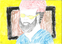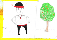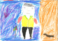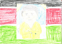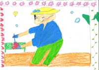 背景の下の枠が緑なのは、何かフェンスとか、外側からお父さんをのぞきながら描いたのかな?など想像しながら選びました。