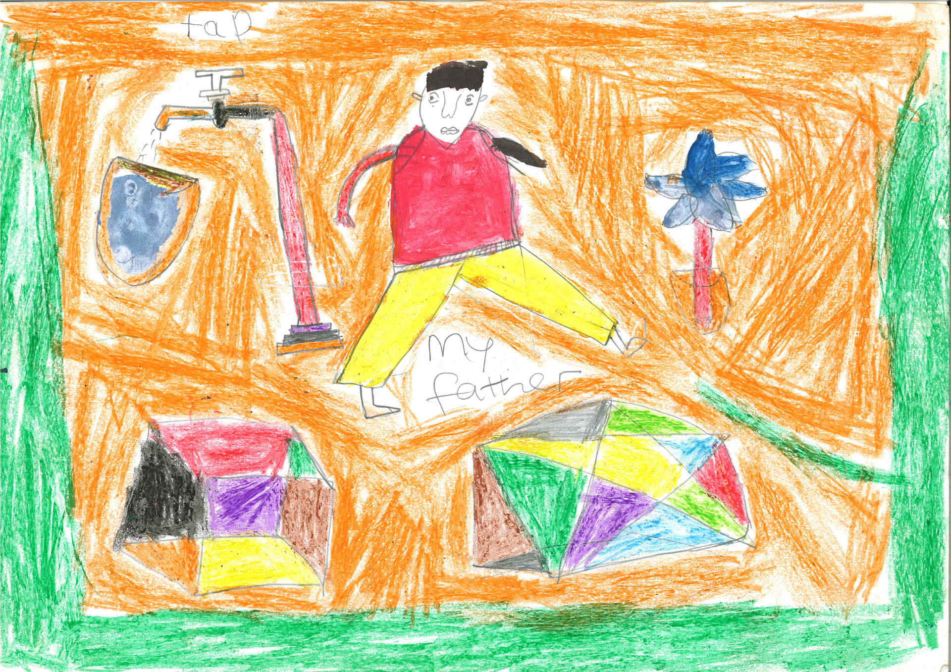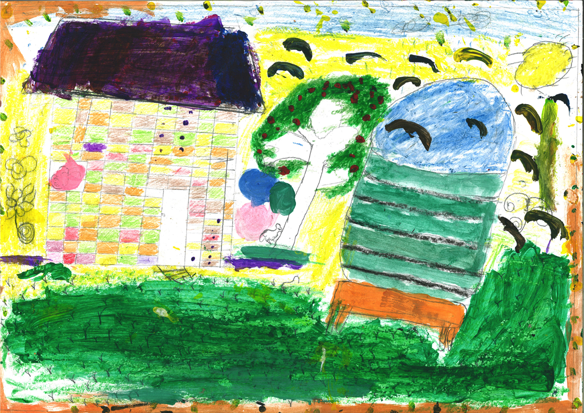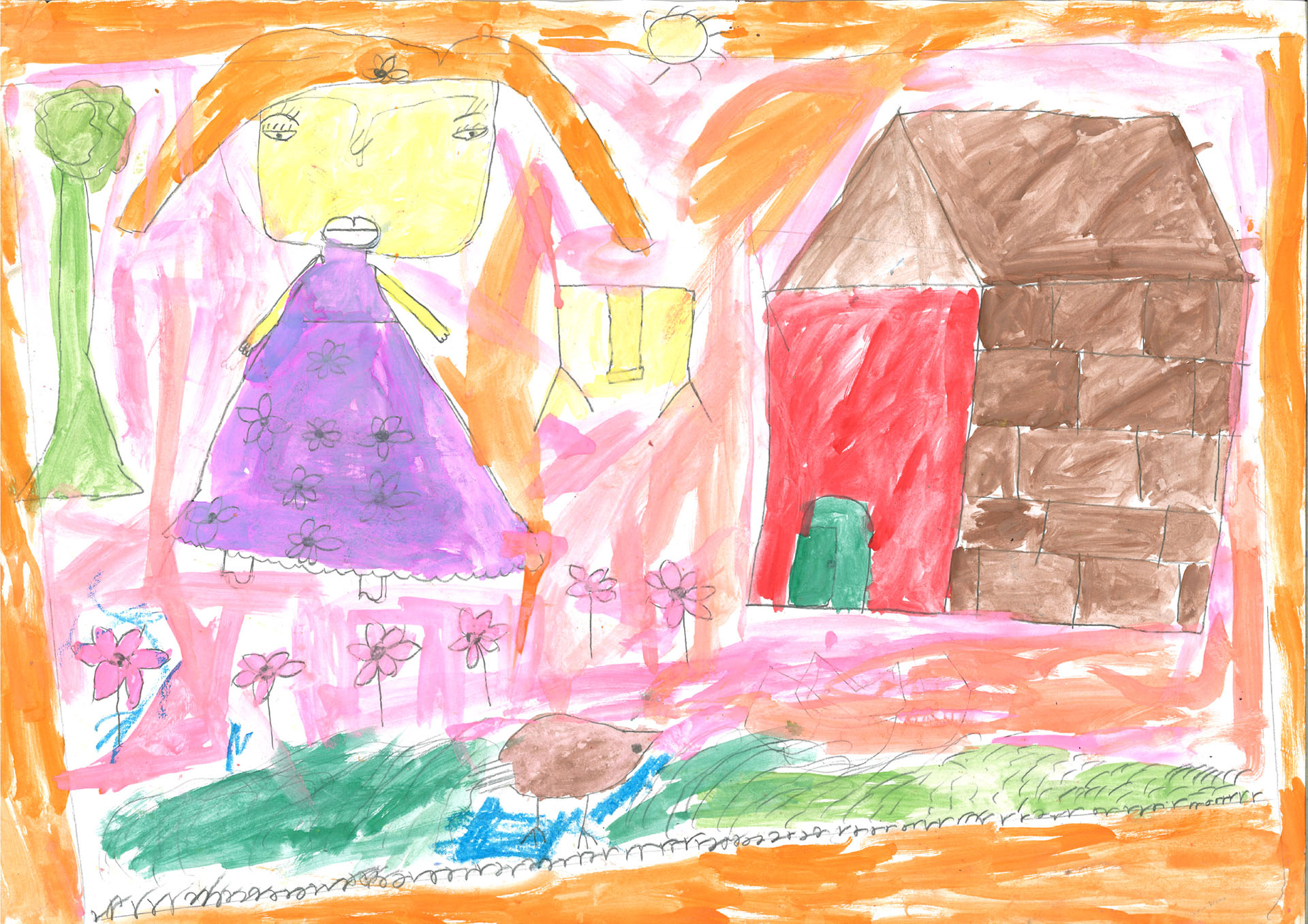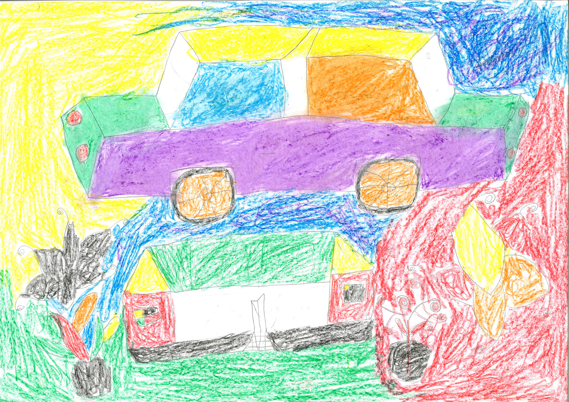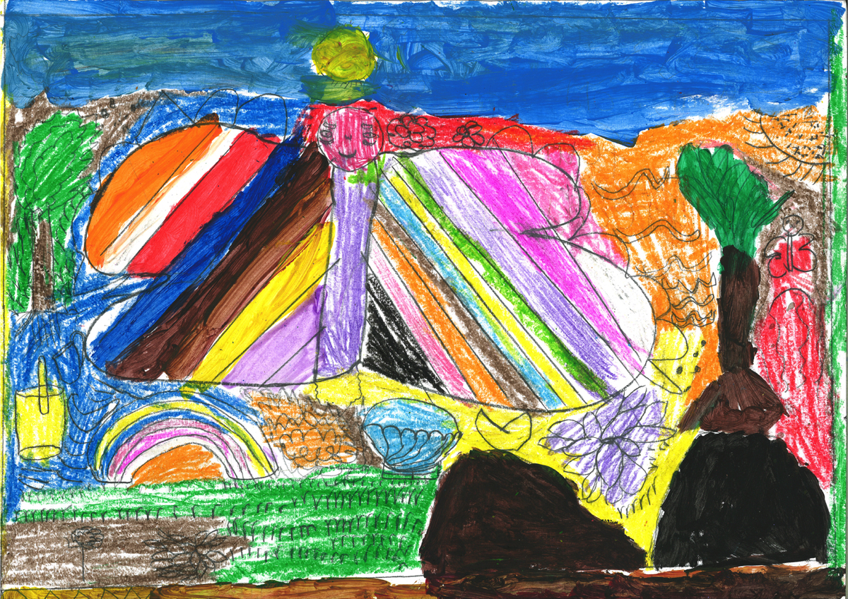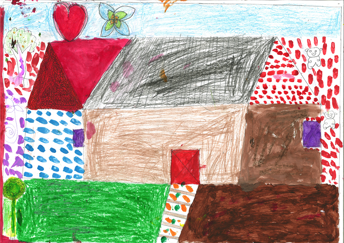 ザンビアの、自国から逃れてきた難民の子どもたちが家族や友達という「人」を描くことが多いのに対し、やっと定住できた子どもたちが「家」を多く描いていることも興味深いです。