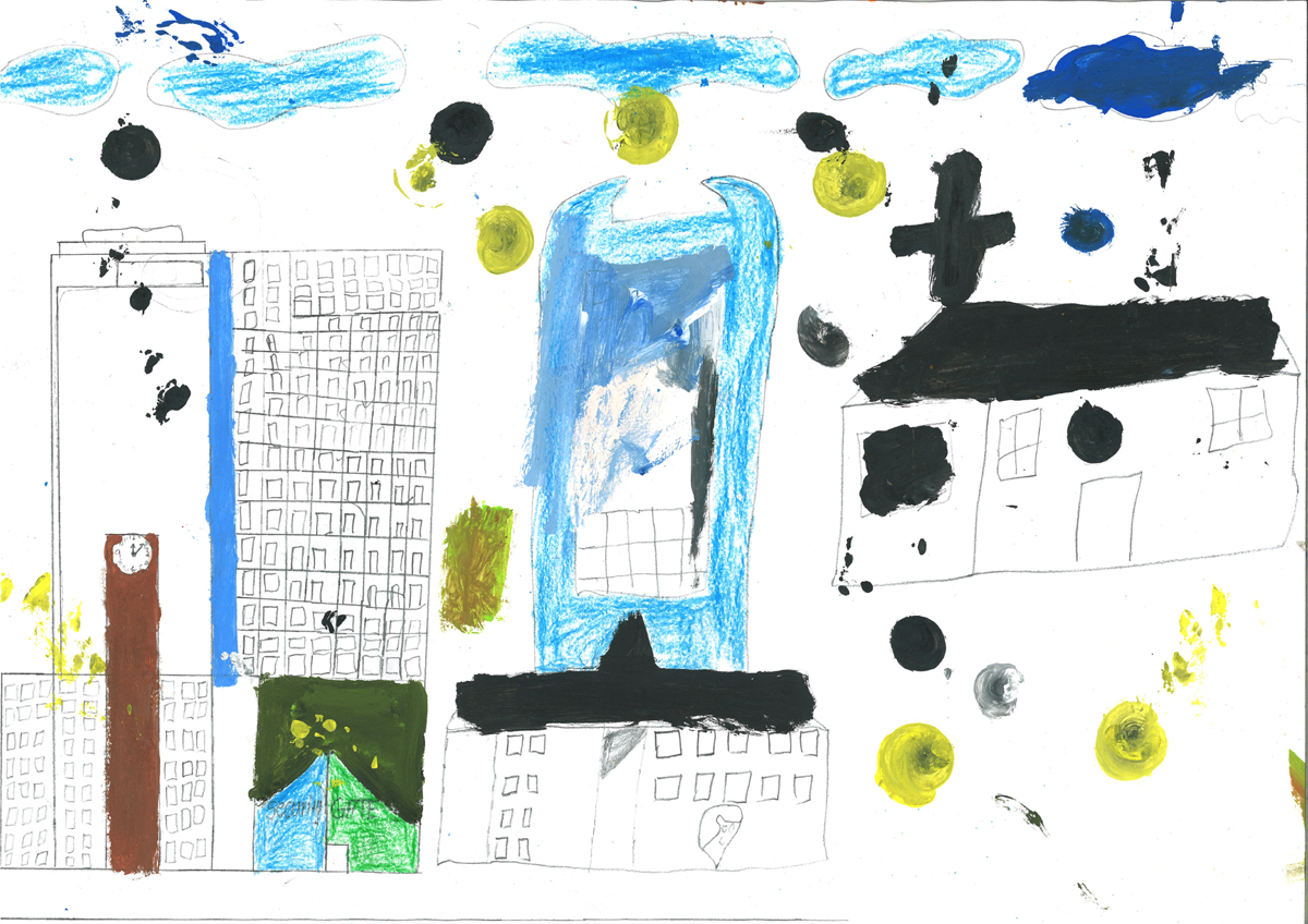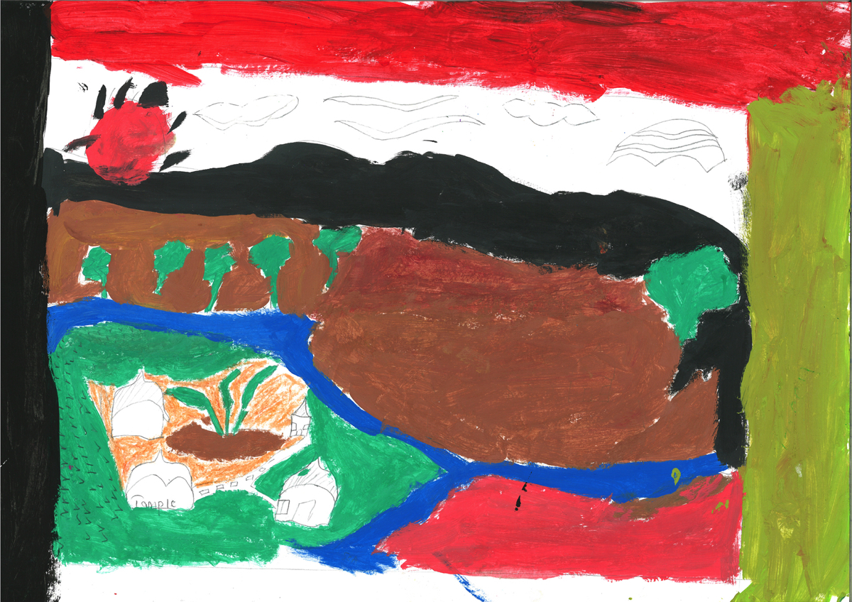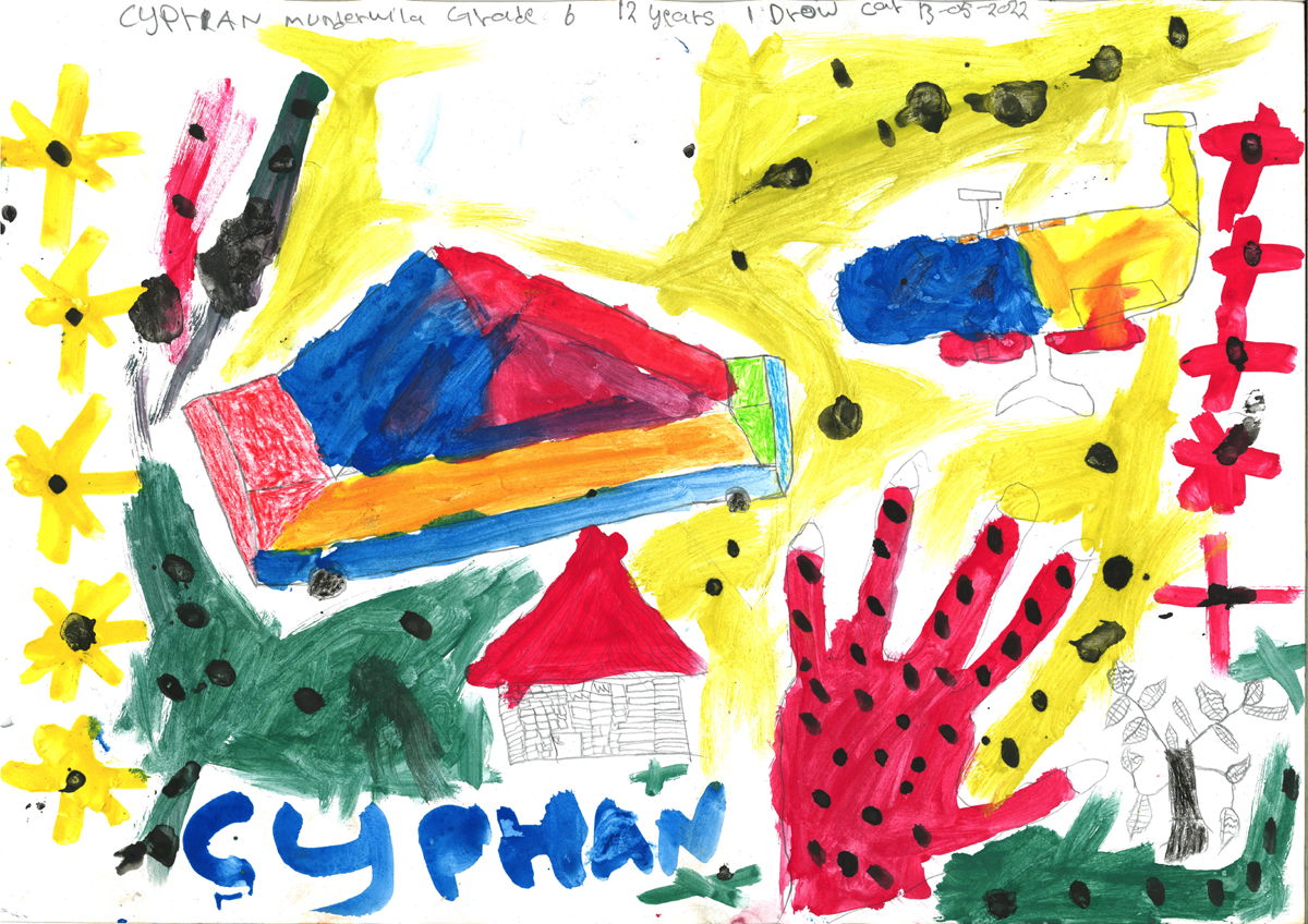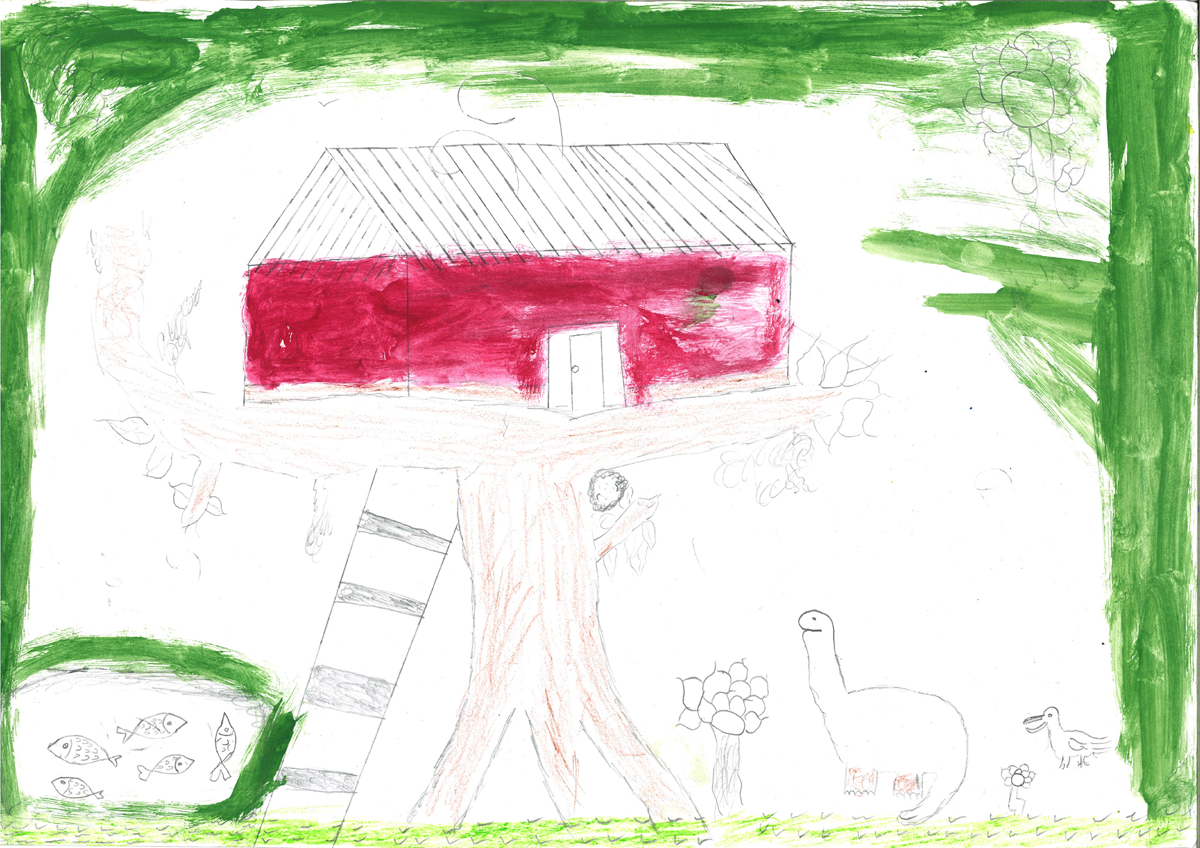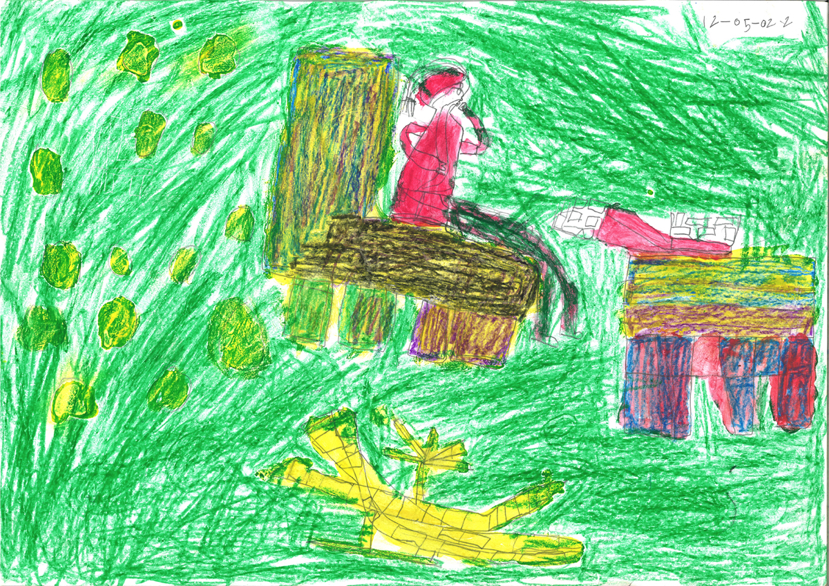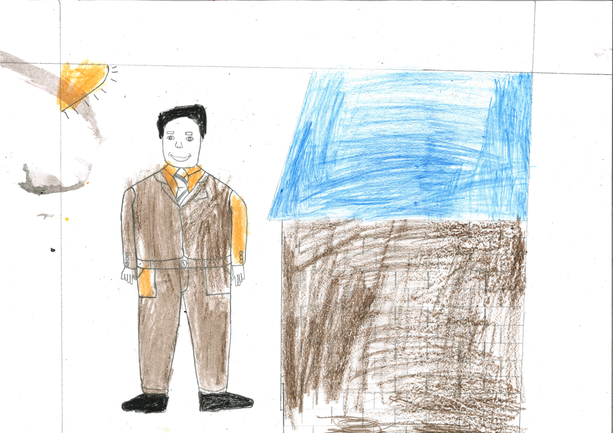 ザンビアの、自国から逃れてきた難民の子どもたちが家族や友達という「人」を描くことが多いのに対し、やっと定住できた子どもたちが「家」を多く描いていることも興味深いです。