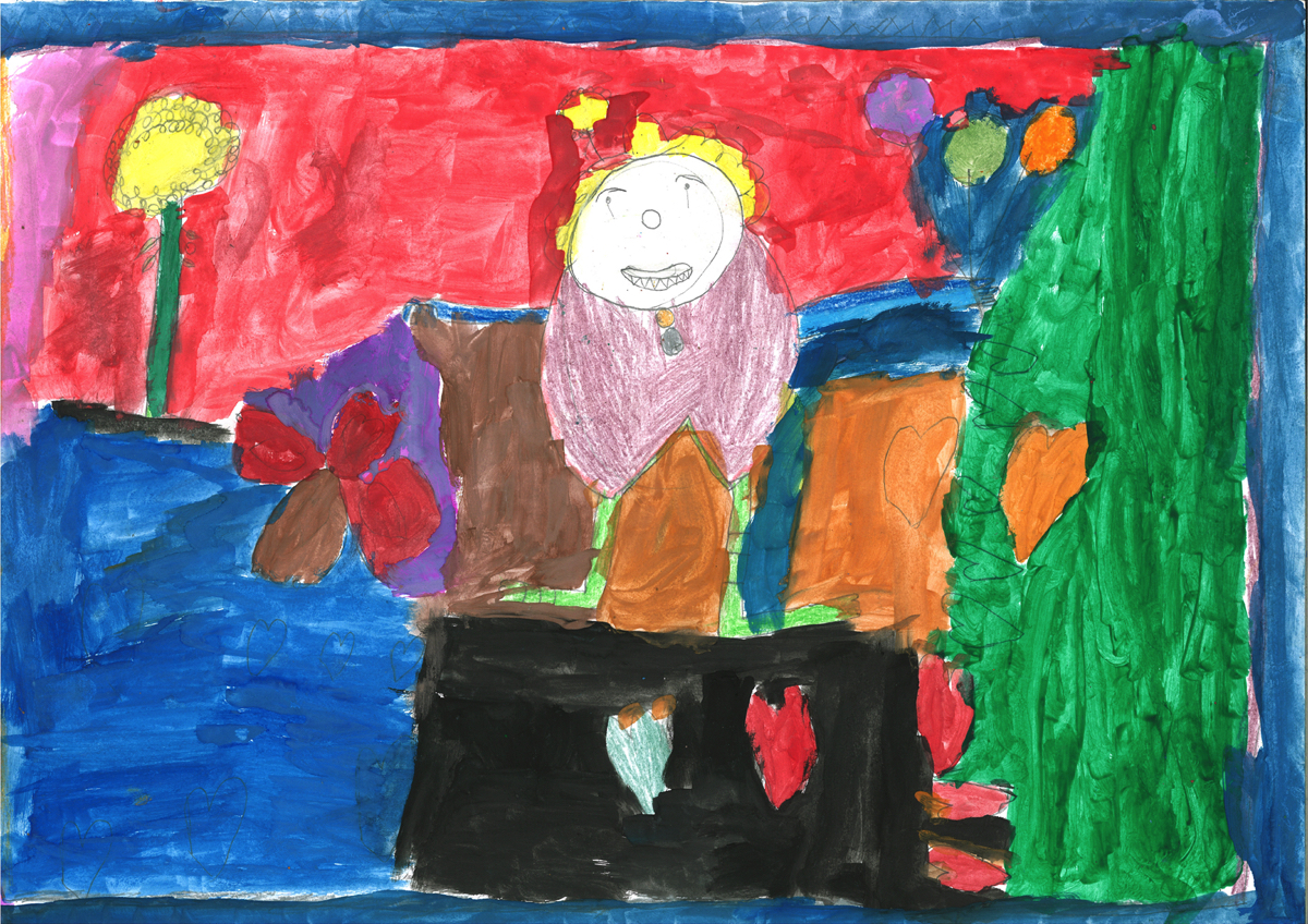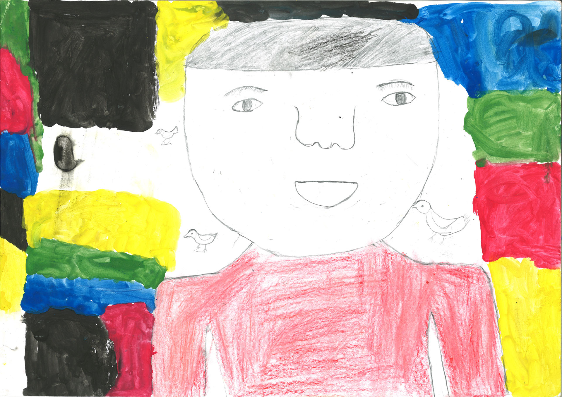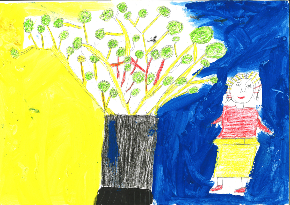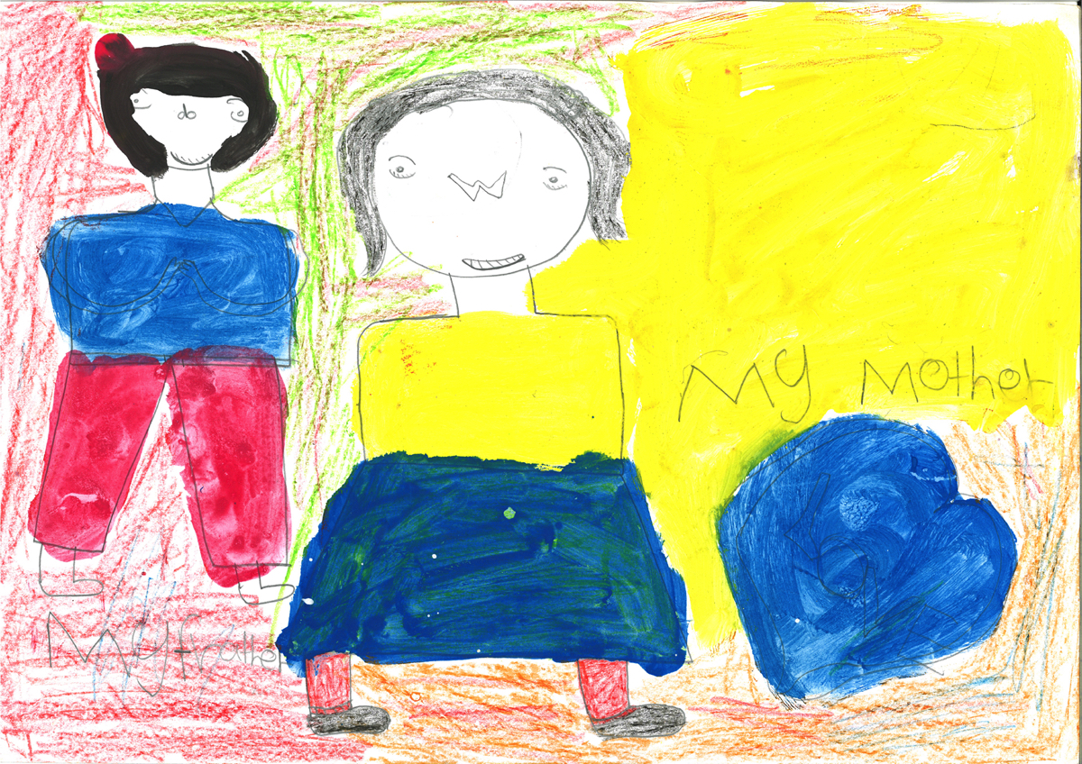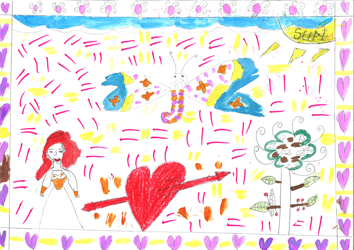 お母さんがポーズしているのも何だか素敵だし、お花や鳥、お母さんを取り囲んでいるものの描き方も可愛いくて、大切な人を丁寧に描いてくれたんだなと思いました。