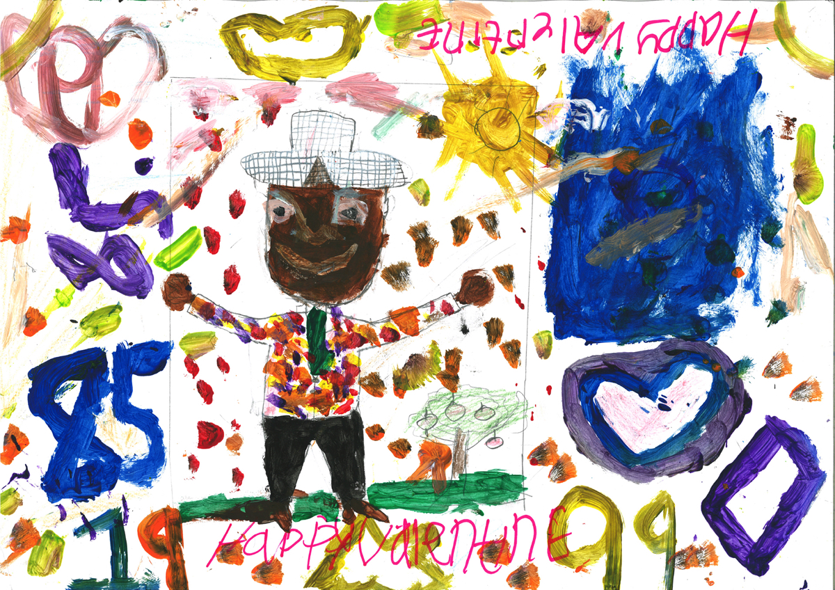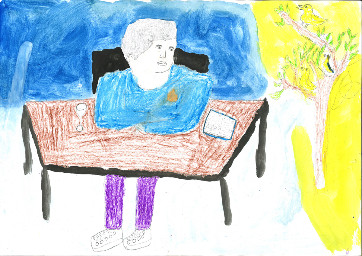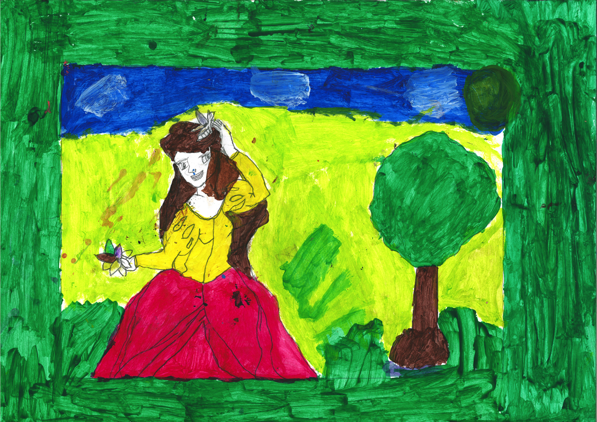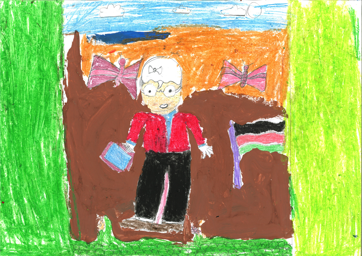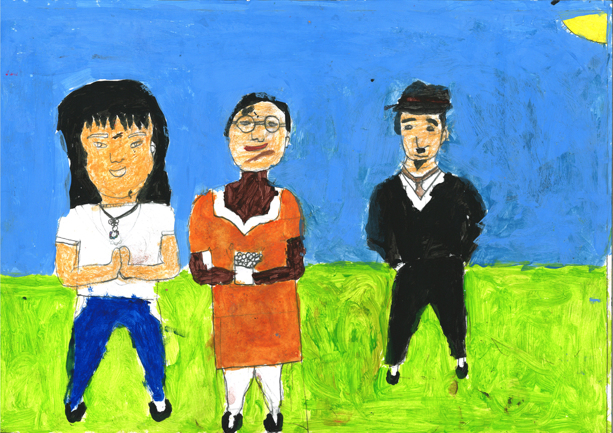 お母さんがポーズしているのも何だか素敵だし、お花や鳥、お母さんを取り囲んでいるものの描き方も可愛いくて、大切な人を丁寧に描いてくれたんだなと思いました。
