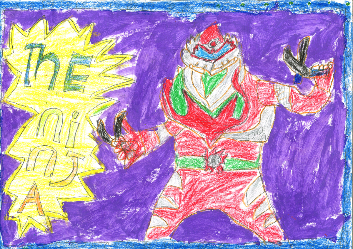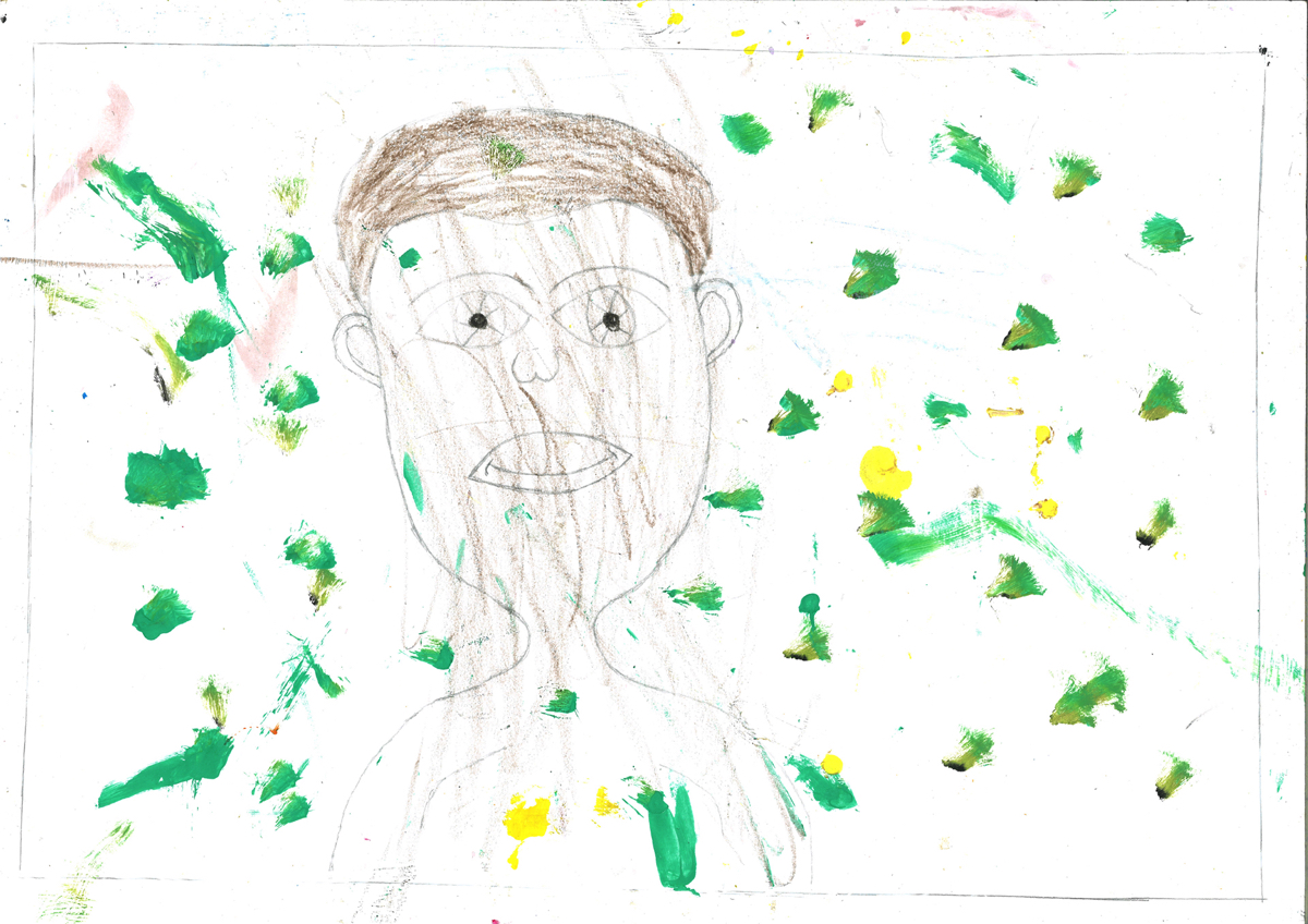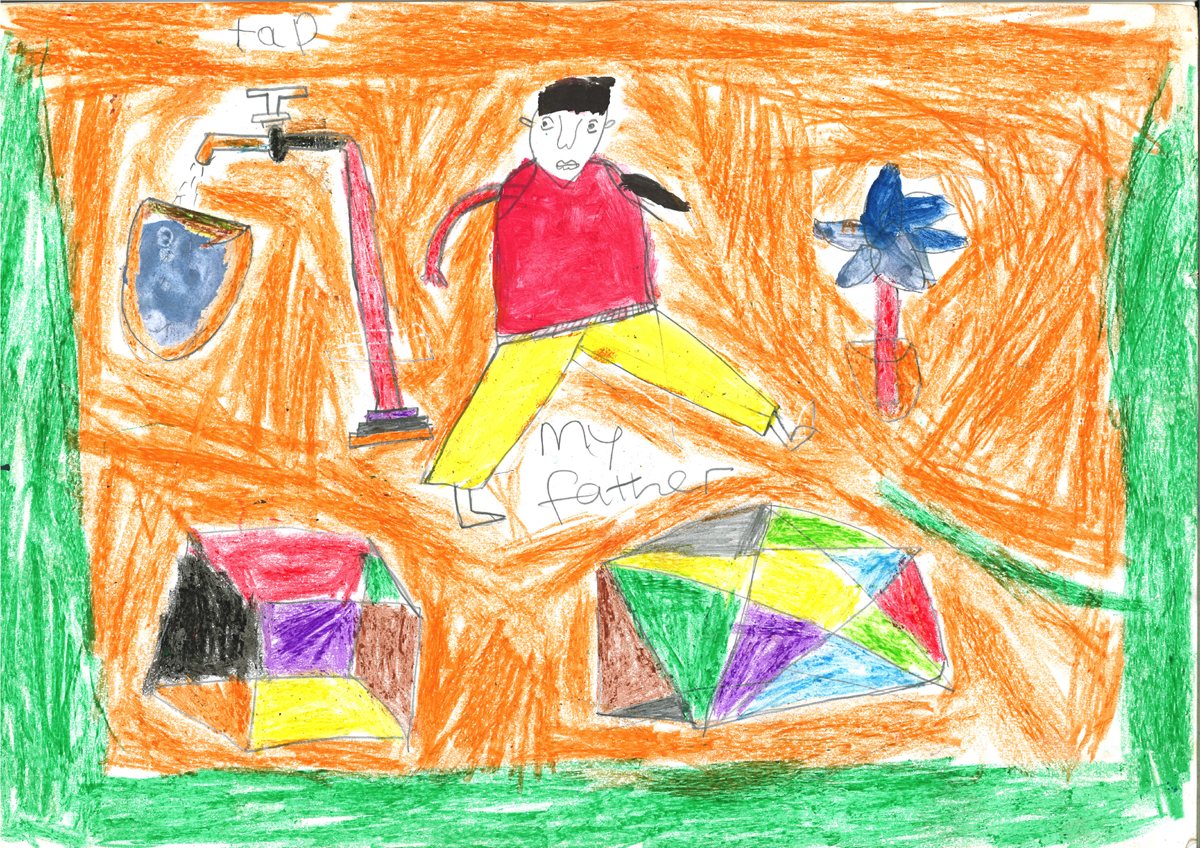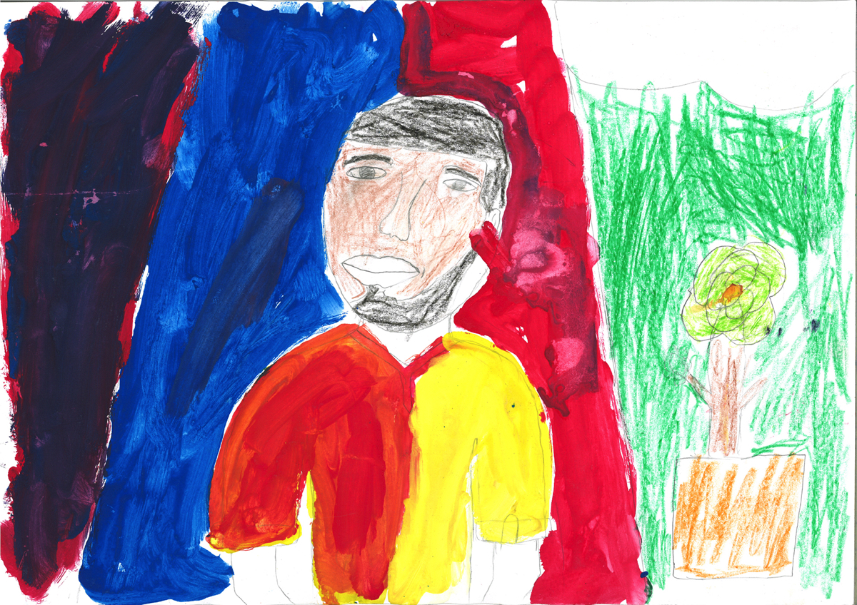 背景の下の枠が緑なのは、何かフェンスとか、外側からお父さんをのぞきながら描いたのかな?など想像しながら選びました。