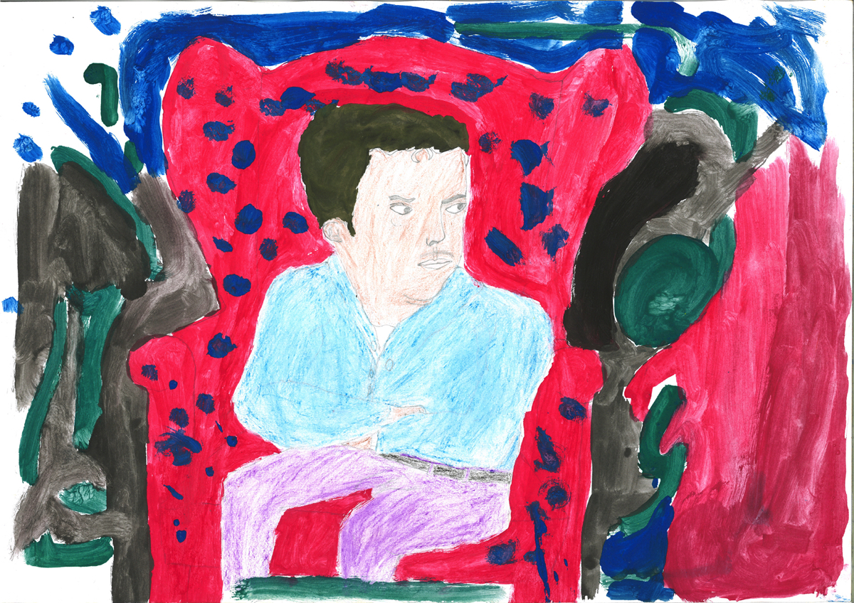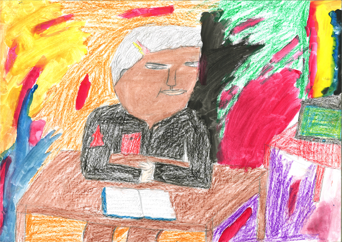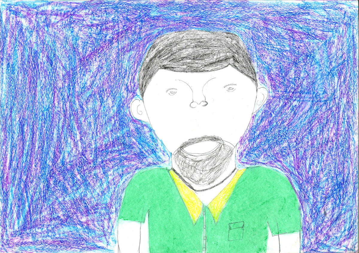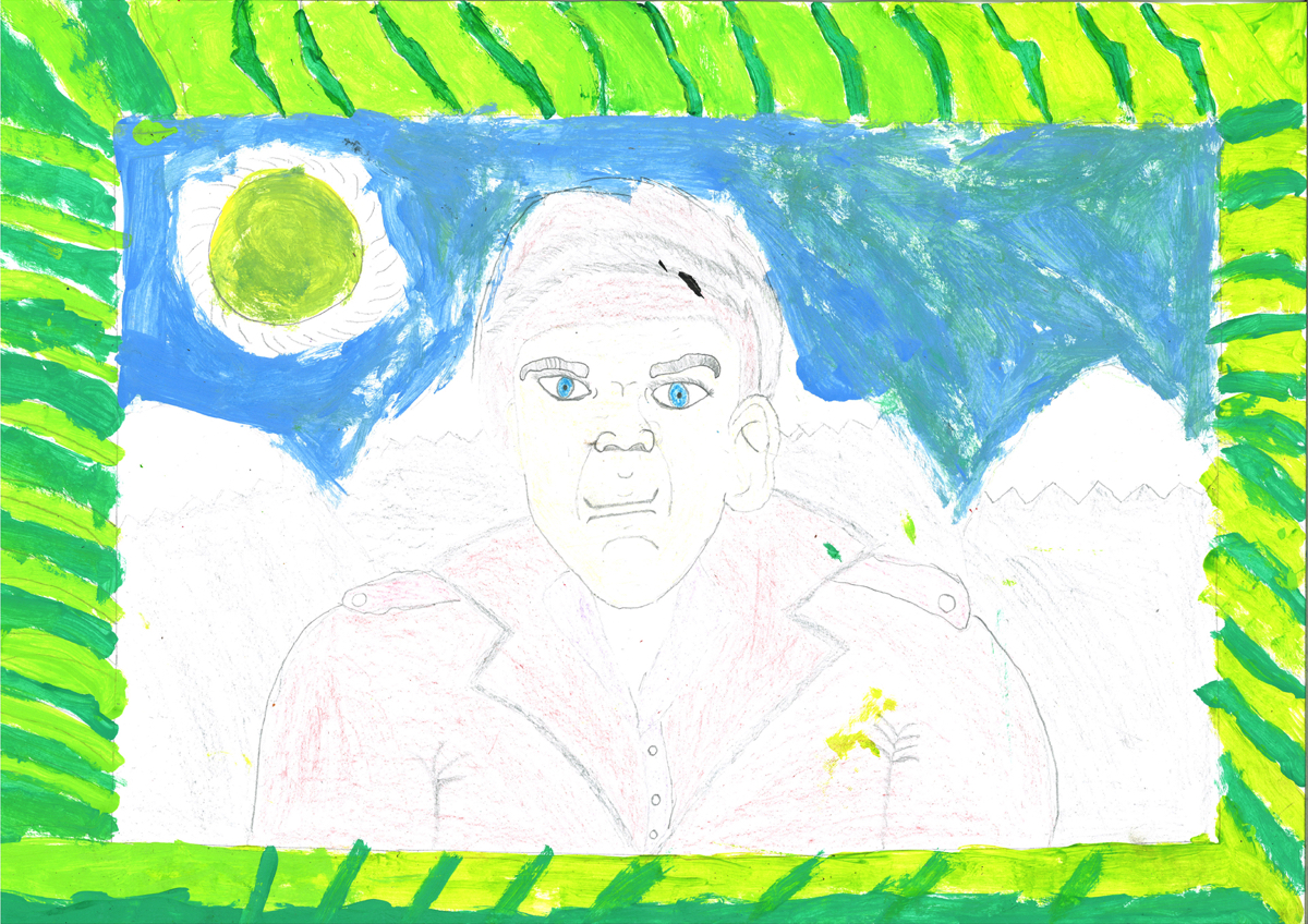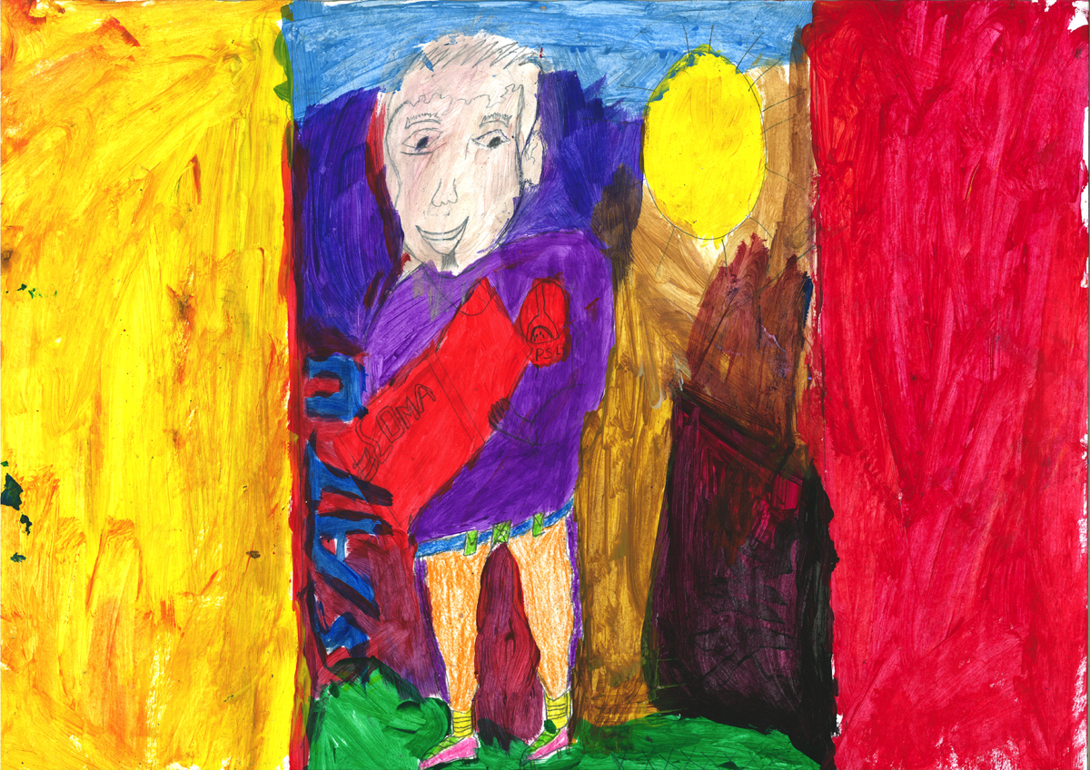背景の下の枠が緑なのは、何かフェンスとか、外側からお父さんをのぞきながら描いたのかな?など想像しながら選びました。